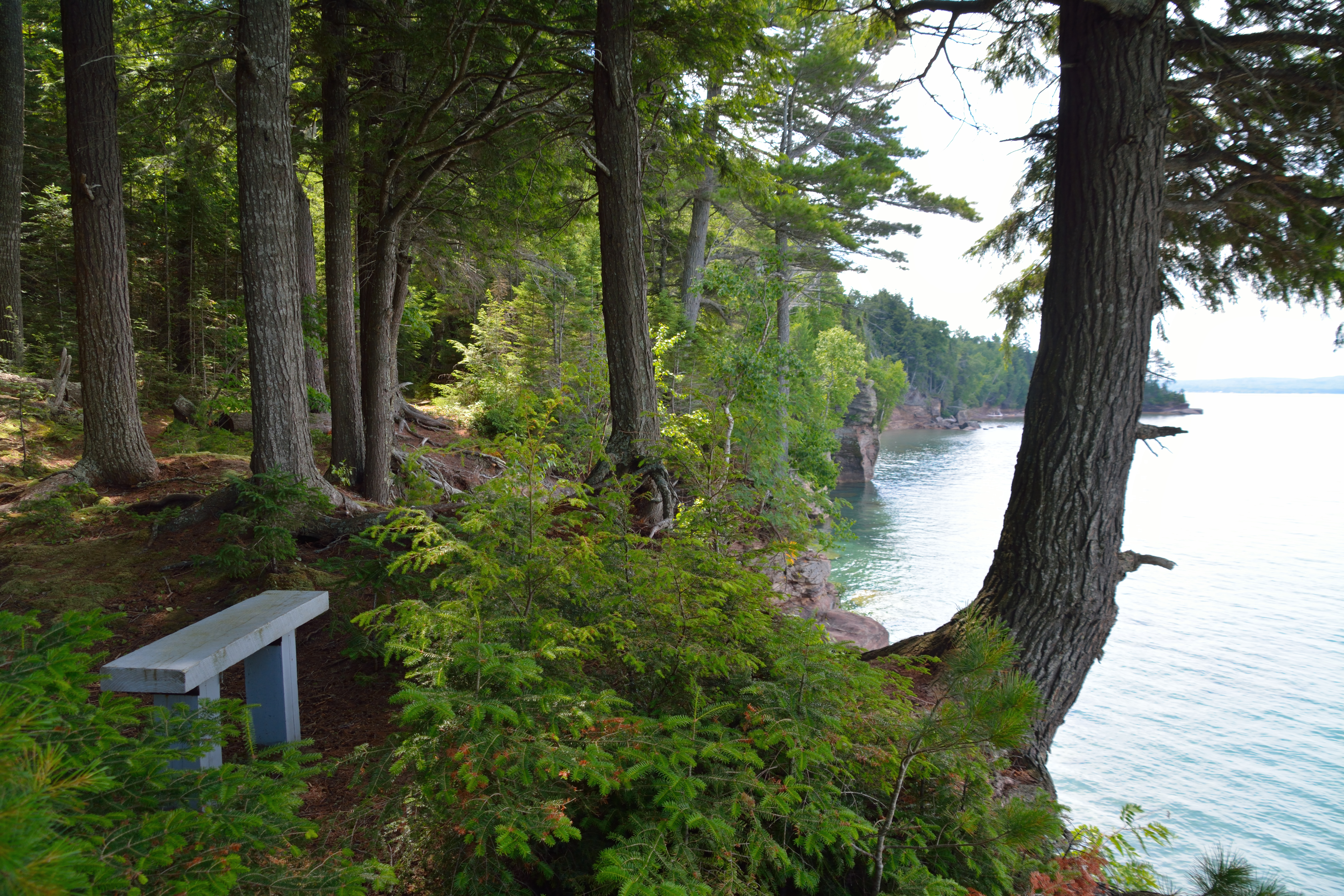 - The view is of Thunder Cove on Grand Island in Lake Superior. I stayed in a cabin here for a few days and hiked around the island . This picture is from one of those hikes. Thunder Cove is on the west side of Grand Island and receives the roughest weather Superior can throw at it. When the waves are high and breaking below, the cove rumbles and shakes from the impact making a thunderous sound. When I was there it was a perfectly gently day. I spent a little time here on the bench in the image. I mean, why wouldn’t you?